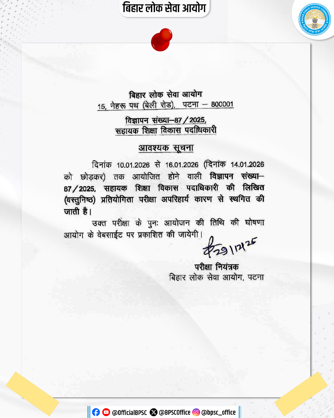 | BPSC AEDO Exam Date Cancel Notice | Download Pdf |