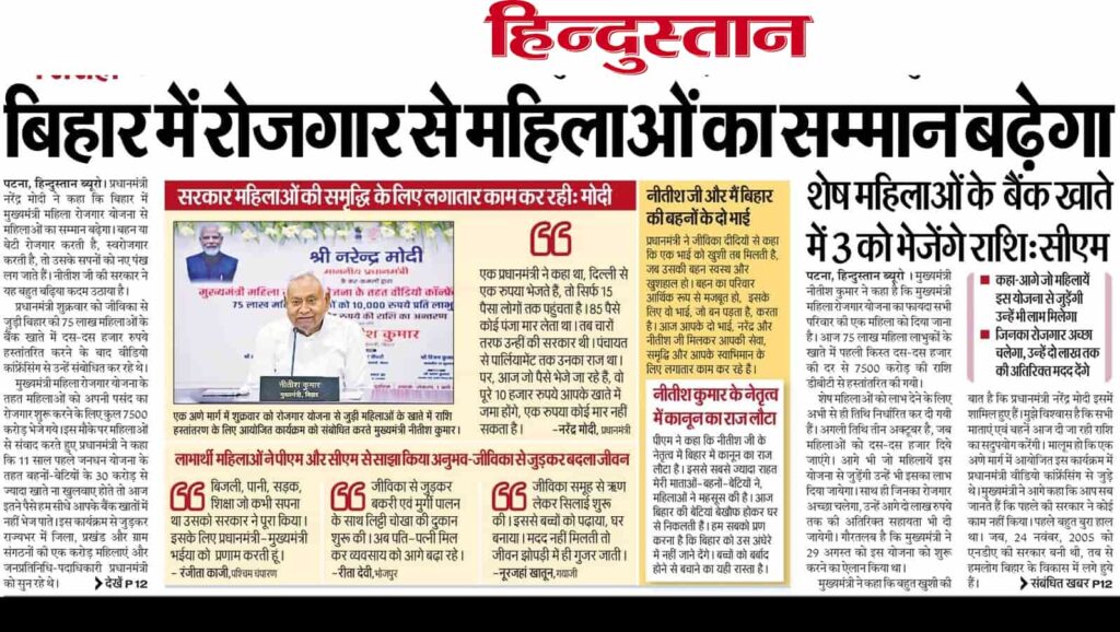 मुख्यमंत्री महिला रोजगार योजना की शुरुआत हुआ और पहला चरण का किस्त जारी